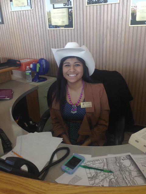 Our receptionist Sofia, taking phones calls and rockin’ that cowboy hat!