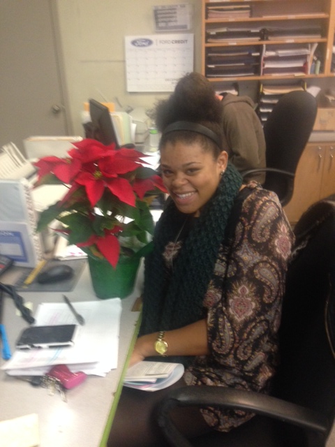 Jaimee, looking lovely with her poinsettia