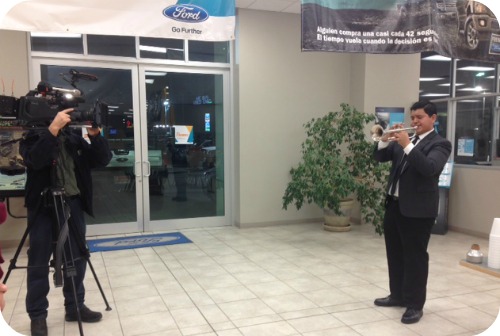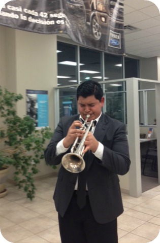 Bryan Beltran-of the Manor Mustang Marching Band– is one very talented fellow. A player of multiple instruments, his long-term dream has been to attend the Guardian Drum and Bugle Corps this summer. Not knowing if he would be able to come up with the funds, Beltran began sending out letters to local businesses requesting donations. When Riata Ford heard about Bryan, we knew we had to help. Starting with a $500 donation and matching every donation he received thereafter, we have helped him reach his goal of $1,500 and couldn’t be happier to announce that Beltran will be fulfilling his dream of attending the Corps this summer. This goal couldn’t have been completed without some fun and festivities, of course! Last Wednesday, Riata Ford had a blast hosting an amazing performance by Bryan Beltran himself. Check out these pictures (and video!) from the event: Bryan’s brother showed up to surprise Bryan and perform alongside him Wednesday night; An incredible duo!